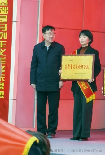 山東宏路重工股份有限公司榮獲了“2024年度淄川區(qū)成長(zhǎng)潛力新星企業(yè)”的榮譽(yù)!宏路股份董事會(huì)秘書(shū)王雪芳代表公司上臺(tái)領(lǐng)獎(jiǎng)。